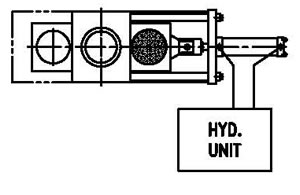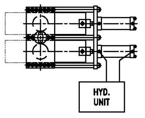 FOR SMALL EXTRUSION LINES (UP TO 120mm) WHERE THE LINE CAN BE STOPPED FOR A FEW MINUTES. THE MOVEMENT IS SLOW, BUT IS HYDRAULICALLY OPERATED.